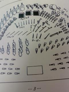 このスコアの最後にオーケストラの編成についての解説があるんだけど、その解説の図が、ちょっとかわいい。